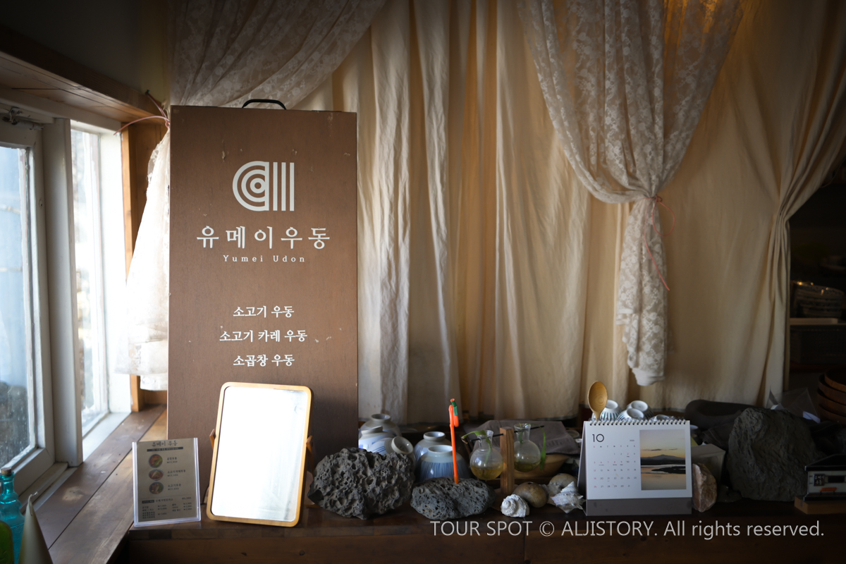 유메이 우동집은 일본의 어느 예쁜 우동집에 온 듯한 느낌을 얻을 수 있을 정도로 겜성일본 간지의 느낌이 많습니다.