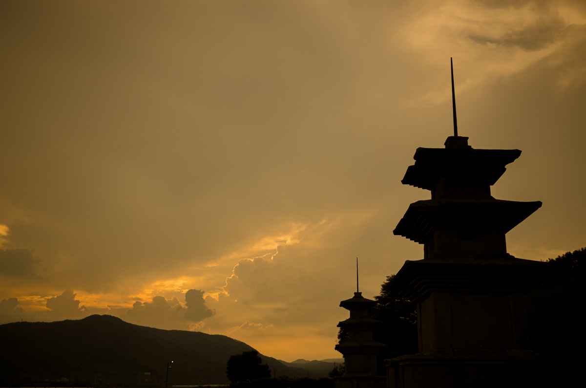 거대한 두 탑이 드넓은 터에 우뚝 서 있지만, 건물은 사라지고 비어있는 공간이 주는 허전함 대신 묘한 충만함이 느껴집니다.