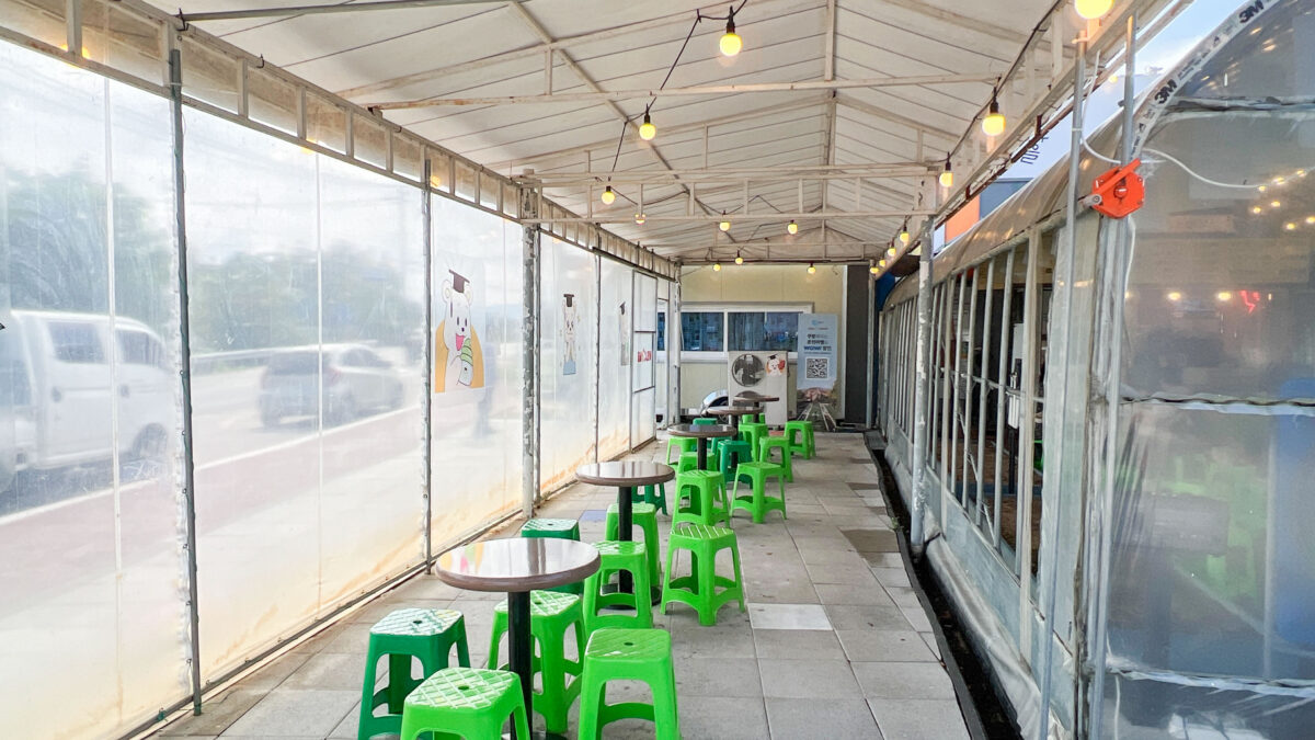 비닐하우스를 개조한 듯한 투박한 공간과 널찍한 좌석들은 꾸민 듯 안 꾸민 듯한 자연스러운 멋이 있습니다.